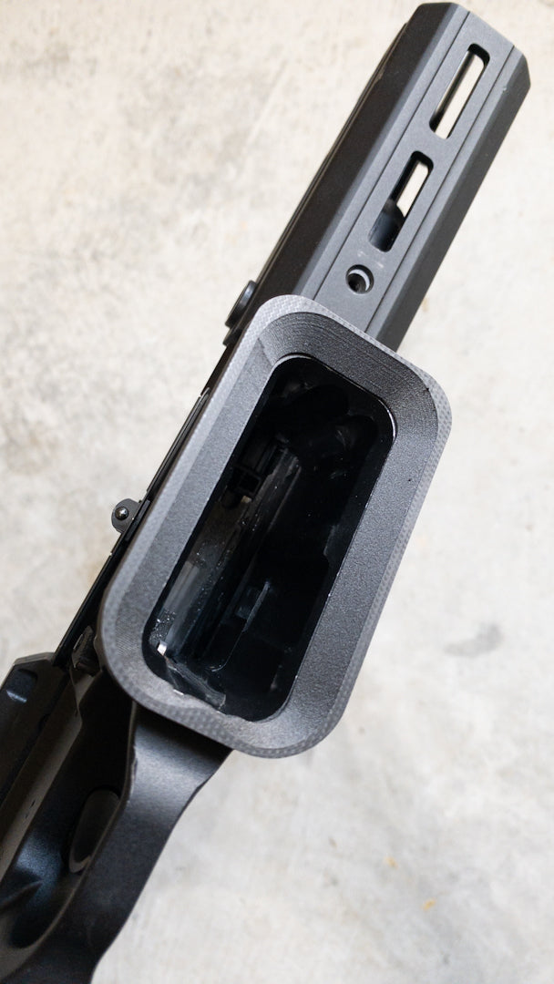 Low profile while adding a little bit of funnel action to hopefully help your reloads. Instead of being an HRF clone, this is styled with the MCX's more angular styling while still featuring smooth corners.