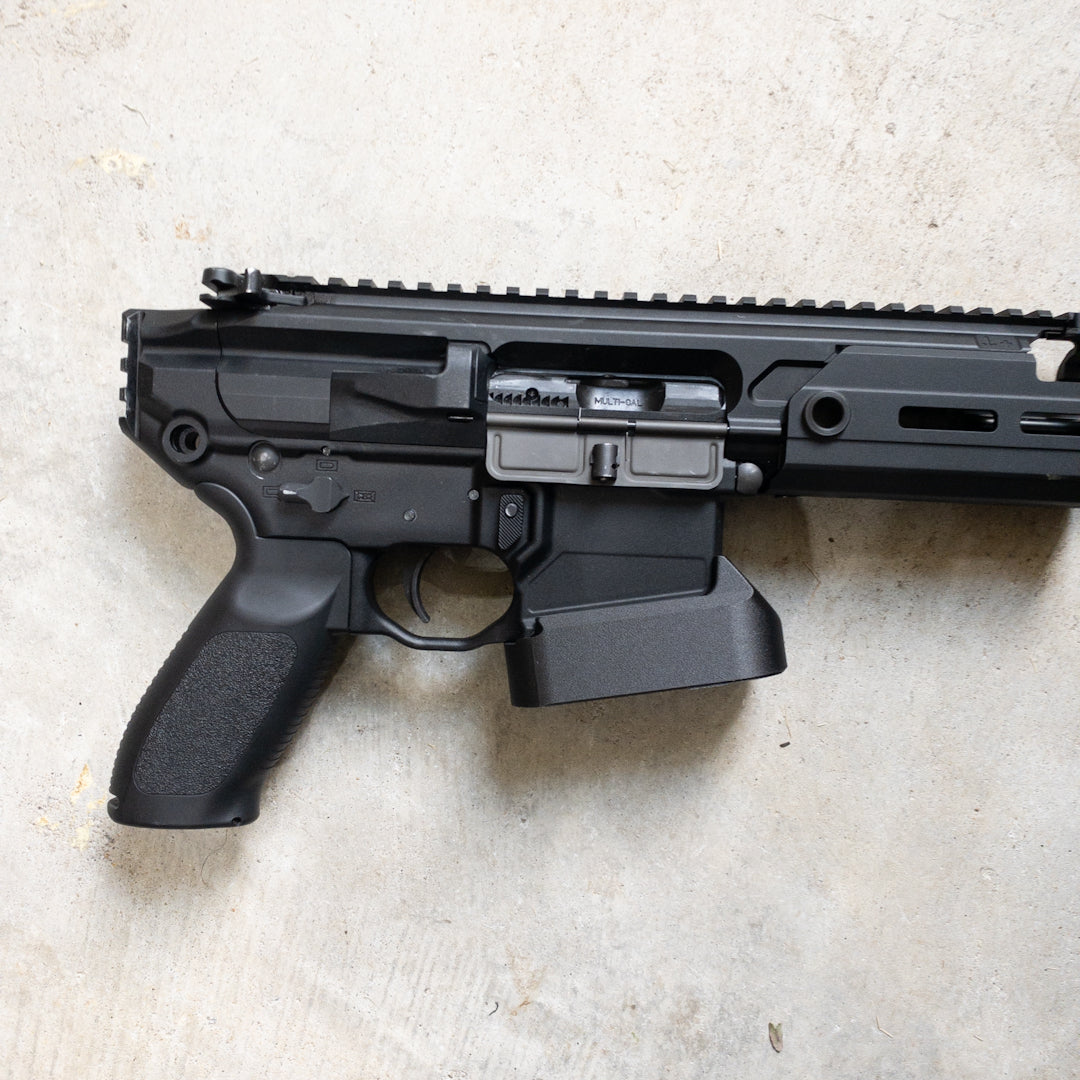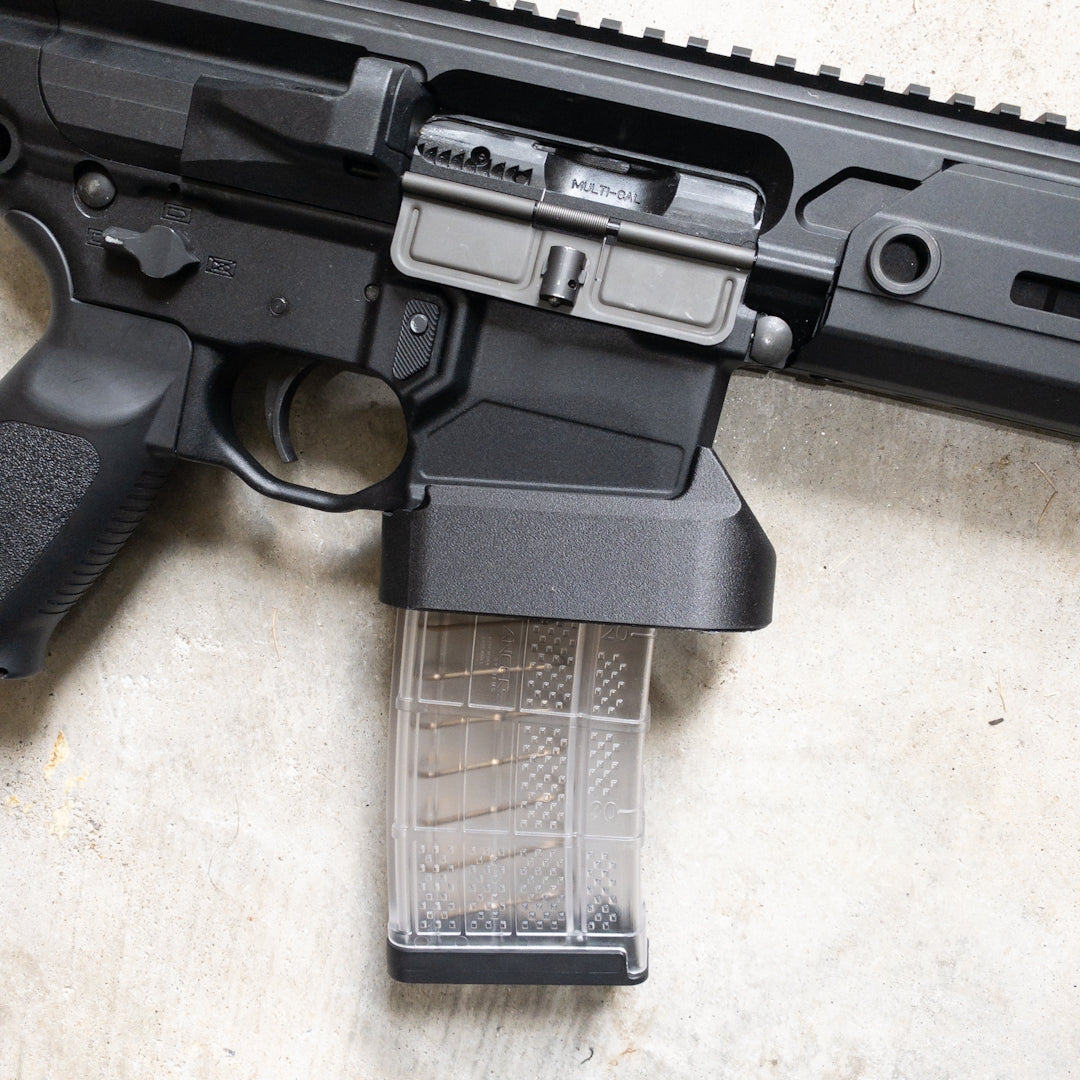 Instead of being an HRF clone, this is inspired by the huge Taran Tactical MPX magwell as well as the huge GWOT-era Arredondo magwell.
