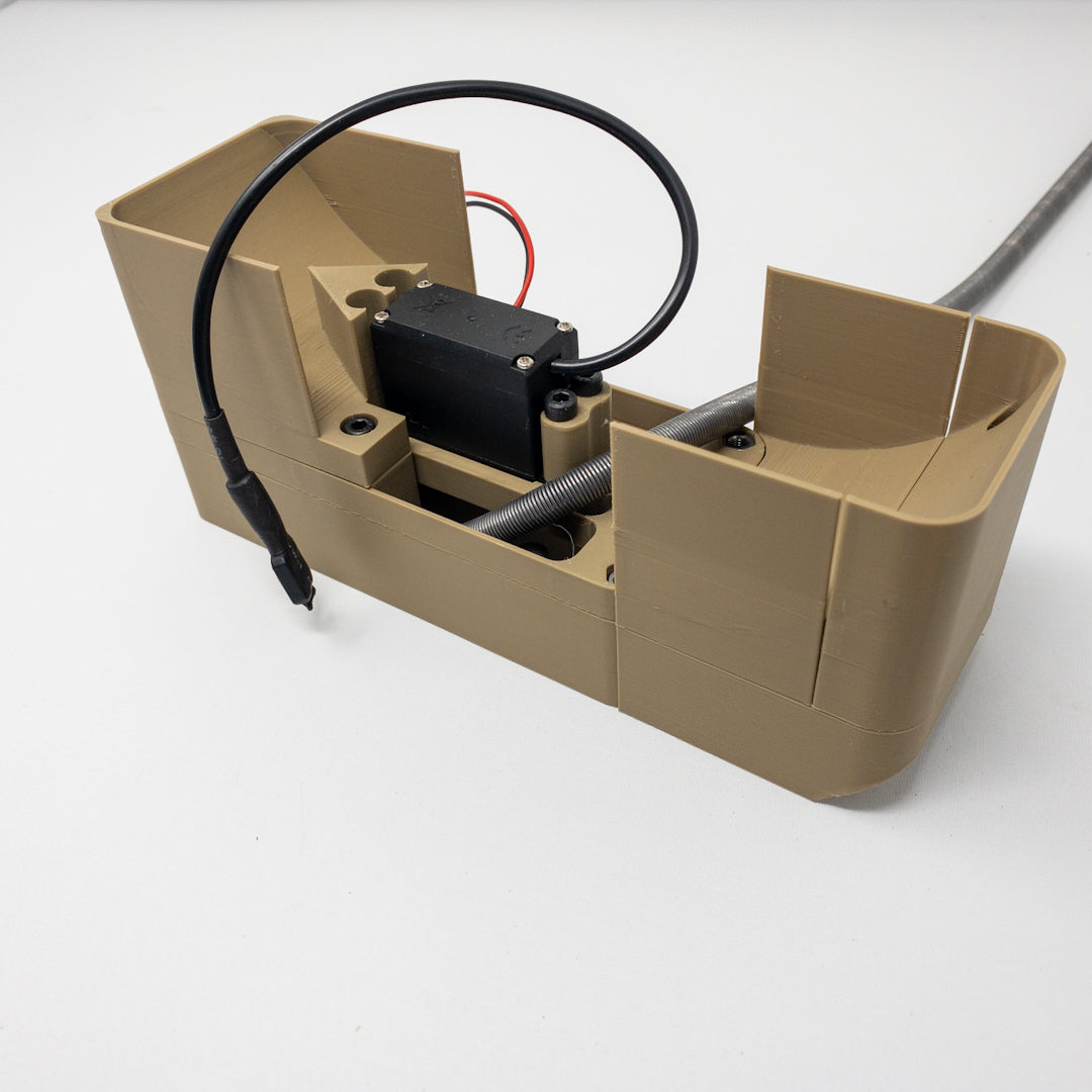 A feeding insert for your VFC 249 LMG's RS big plastic box; if you already have your M249 modified for HPA and already have a big plastic box, this is plug and play! If you want the whole adapter (including box and HPA fittings), click here instead.