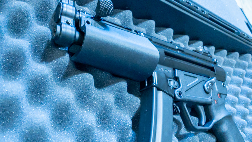 The Black Variable VFC MP5K Chibi War Handguard goes as rearward as possible on the MP5K, with the thicc girthy grip adding more surface area as well as hiding the weld/seam line on the bottom of the receiver where your thumb would normally go with a K vertical grip.